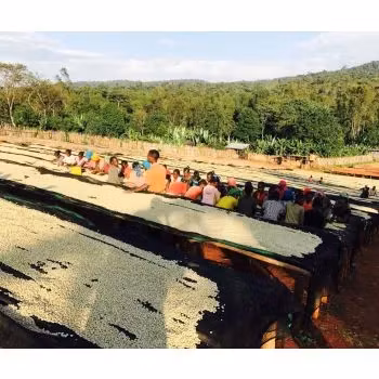 Denna lot med cupping 86,25 & Grade 1 i kvalitet bjuder på en typisk Yirgacheffe profil med en klar citruslik syra och en silkeslen kropp. Mjuka, söta toner av jordgubbsmilkshake blandar med mörka druvor.